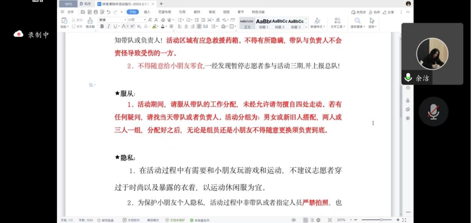 4月13日晚,余洁开展了志愿服务培训,该培训详细介绍了本次活动流程、自闭症群体的特征、活动注意事项等。