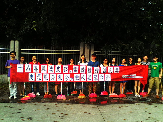 2013年5月16日下午四点半,大雨过后,清新的空气中夹杂着泥土的气息,法律系10级党支部开展了党建系列特色活动之“志愿服务社会,爱心凝聚和谐”清扫公交车站的志愿服务活动。