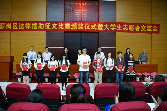 法律系承办萝岗区司法局“我心中的法律援助”征文比赛的颁奖仪式