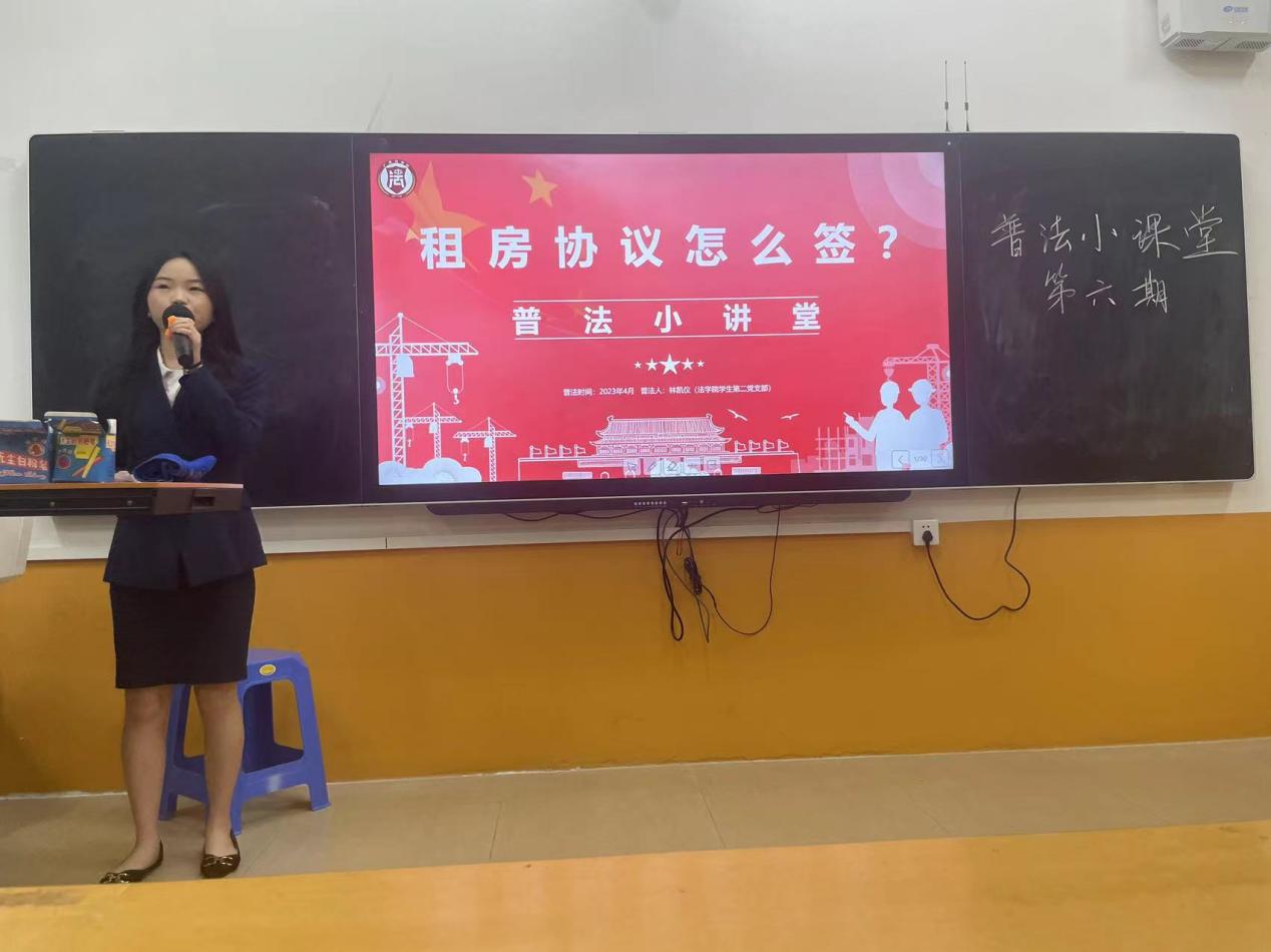 紧接着,第二位宣讲人林凯仪,其宣讲的主题是《租房协议怎么签》。她利用案例分析向同学们列举了在签订租房合同期间将面临的问题,并一一提出解决方案,让同学们认识到在签订合同时要注意的问题,转租合同时的陷阱以及租房期间租赁合同所引起的纠纷,学会运用如协商、调解、仲裁、起诉等法律手段来维护自己的合法权利。