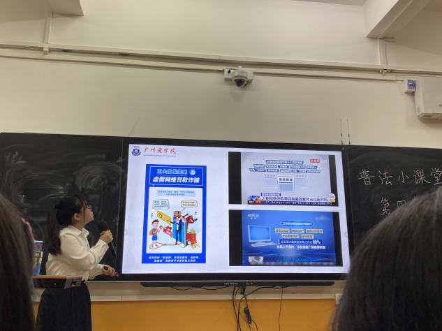 首先,第一位宣讲人苏梓柔,其宣讲的主题是《诈骗罪-别让网贷毁了一生》。苏梓柔列举了具体事例和真实事件,深入讲解了网贷的危害,使同学们对诈骗罪的相关法律知识有了更深入的了解。