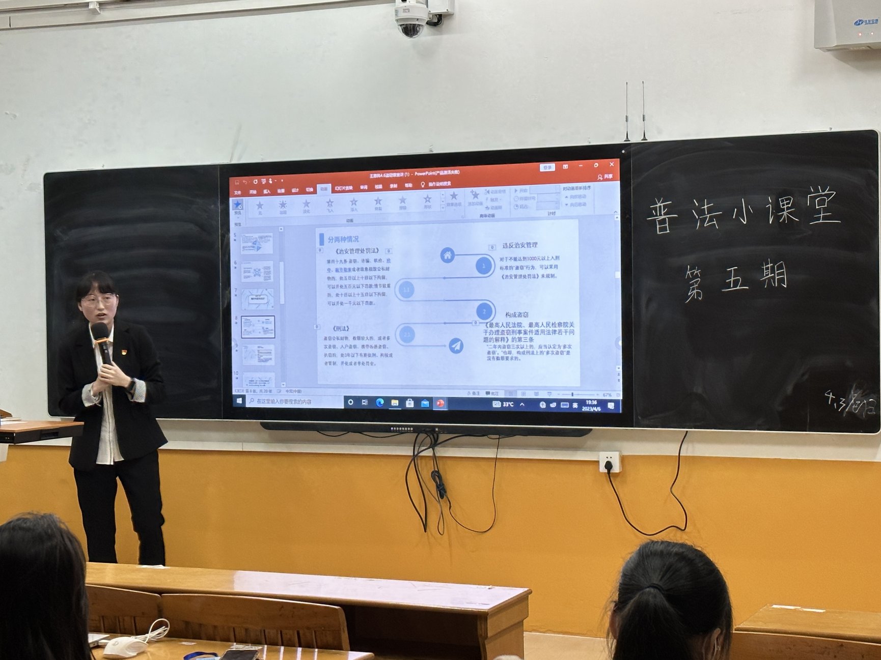 起初,第一位宣讲人是王惠民同学,其宣讲主题是盗窃罪。王惠民介绍了盗窃罪构成要件,运用法条详细列出盗窃罪如何定罪论处;接着结合偷外卖和蹭网两个案例解析盗窃罪,使同学们对盗窃罪的相关法律知识有更好的了解。