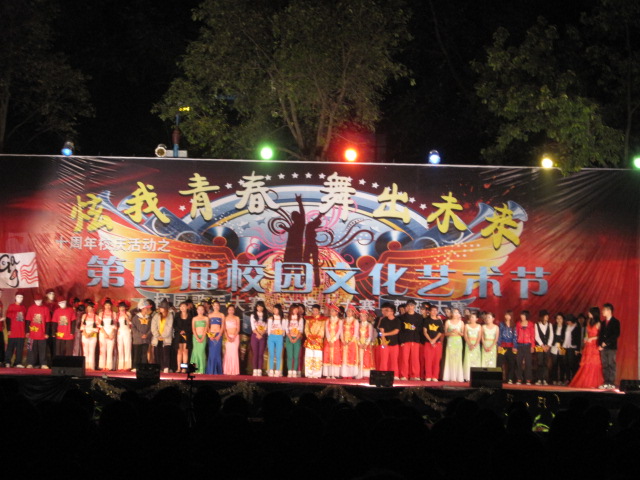 2009年12月6日,华南师范大学增城公司十周年校庆活动之第四届校园文化艺术节 “延续辉煌传奇,舞出真我色彩”舞动增院舞蹈大赛总决赛在足球场的舞台上隆重举行。同时,本次大赛也是为了庆祝增院建校十周年校庆这一光辉时刻,而且我系也很荣幸能够邀请到公司党委谭马利副书记、公司员工处何伯略副处长、公司团委王龙华书记等公司领导和各系老师、辅导员,以及我系张永奇副主任、老师、辅导员,还有各系的团委员工会代表作为嘉宾,出席本次大会。此外,还有艺术团和舞蹈协会的干部作为大赛的评委。