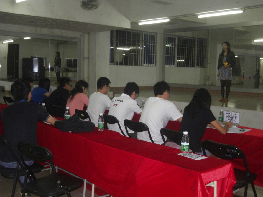 为了比赛的公平公正,我们请来了几方代表做为评委,分别有陈一川老师、增院会计系代表、增院法律系代表、增院员工会文娱部代表、增院音乐协会代表、康大代表以及华澳代表。海选现场既有秩序又有气氛。这几天晚上许多选手早早就前来签到,迫不及待地想放声歌唱展现自我。还有的匆匆忙忙来报名,希望自己能赶上末班车。参赛选手15人为一组,一组在场内候场,一组在场外候场,这保证了比赛的顺畅和秩序,也提高了工作效率。虽然只是清唱,但参赛者都向评委展现出自己最好的一面,大家互不相让,角逐着让自己通过海选。参赛者有的唱国语歌,有的唱粤语歌,有的唱英文歌,还有的自弹自唱……大家那颗怀着梦想的心在此刻得到了绽放。快乐地歌唱,让梦想飞扬。形体房连续几晚传出了美丽动听的歌声,唱响了青春乐章,唱响了和谐增院。