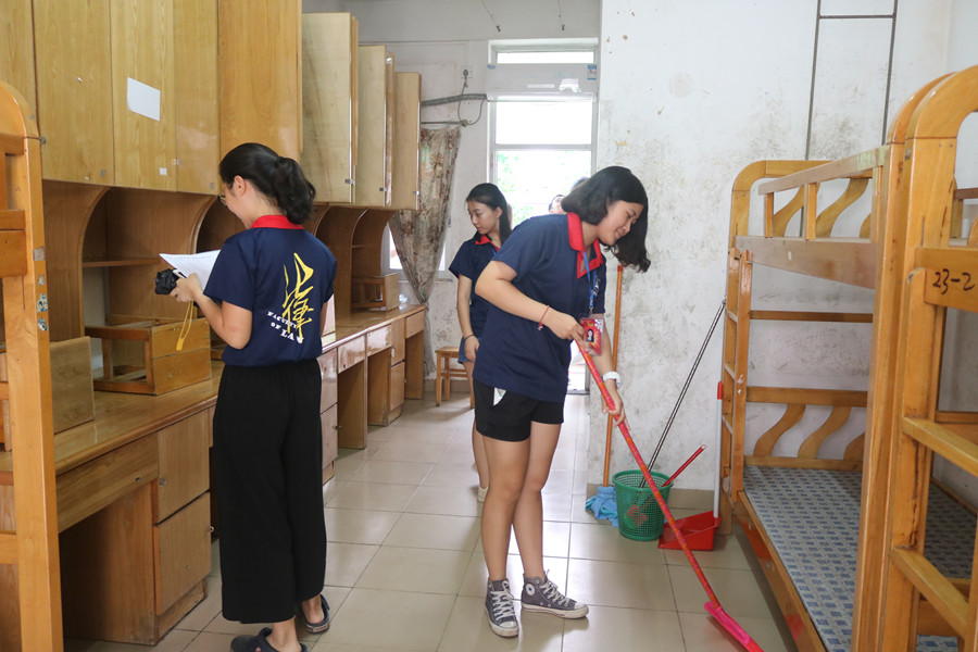 干部为新生打扫宿舍