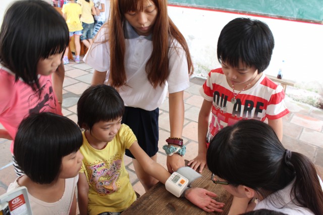 本次活动在服务队医疗卫生组的筹划下顺利展开,队员们就急救、卫生、医疗等方面做了充分准备,同时得到了陈库公司师生们的支持与配合。在结合支教组课程时间后,医疗卫生组的队员们向同学们宣传日常卫生常识与传授基本急救医疗措施,同时还耐心解答同学们在生活上关于卫生防护的疑问,并就部分同学血压较低的情况向他们讲解增进营养的方式。服务队从“关爱儿童”的角度开展的医疗服务突显了当代社会的人文关怀。