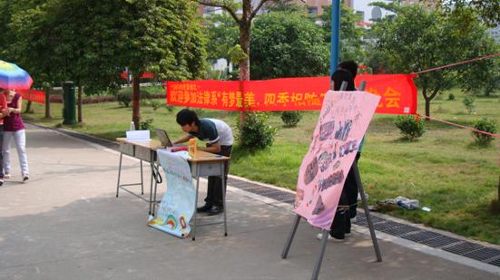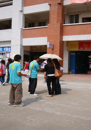 决赛的宣传工作于初赛大致相同,不同的是我们加大了宣传的力度,并且为了能够引起更高的关注度,我们利用参赛选手的知名度进行宣传——人气投票,我们专设两个下午的时间给参赛选手进行拉票,同时也保证了投票的真实性。我们还派发关于决赛时间地点的传单,以让更多观众前往观看而此次投票各队所得的分素也最终会加入决赛当晚各队的总成绩中,这充分的调动了各位参赛选手的积极性,在各参赛选手的带动下,我们的摊位热闹非凡,吸引大量同学老师进行投票,无形中也达到宣传的效果。