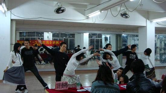 11月15日,我们于晚上8:00在公司舞蹈室正式开始初赛选拔,为了保证舞蹈室的良好环境,我们拒绝对外开放,以让比赛者能在不被打扰的环境下专心于比赛;为了保证比赛当中的衔接,在催场方面,我们继续实行一对一方针,由跟进的干事进行催场,另外还加派两名干事作为催场总负责,使得初赛当晚紧张而有序。为了更能让优异者脱颖而出,我们邀请了不同代表的伯乐,有舞协会长温晓莹、郑映玲,艺术团团长赖家鸣,舞蹈老师赵金珠、陈抗,法律系辅导员林婉芳、李钊帆。使得入赛选手在更公平更专业的评选下淘汰他人。