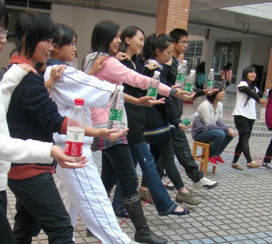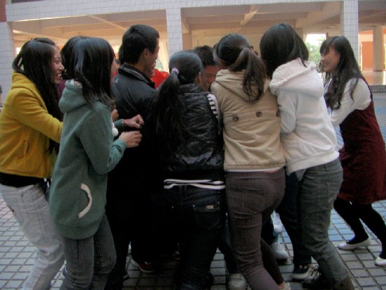 “数字游戏”结束后.接着进行了室外活动.分别有“摩肩接踵”“人墙游戏”在这两个游戏中, 让大家感受到压力的力量,从而摆脱压力。活动的目的在于在愉悦的气氛中学习到心理知识,潜移默化一些心里精神理念,加强干部干事之间的默契,增进互相的了解和认识,最终在活动后提高员工干部的抗压能力。