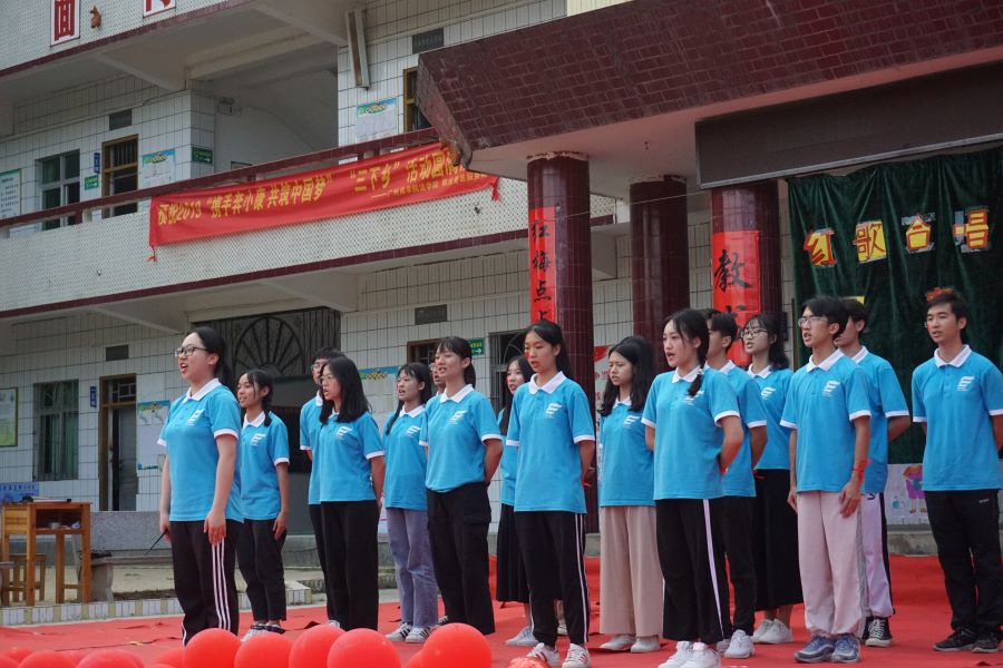 为庆祝新中国成立七十周年,提高同学们对国家和民族的自豪感。7月19日下午,由阳光普法服务队组织开展以 “我爱祖国,童唱国歌”为主题的红歌合唱大赛。出席本次比赛嘉宾评委有阳光普法服务队指导老师肖丽般、李华学、队员邓宝怡、林兆全,比赛由队员伍思德主持。