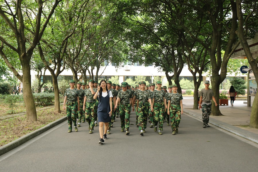 2017级新生辅导员带领军训新生迈步训练