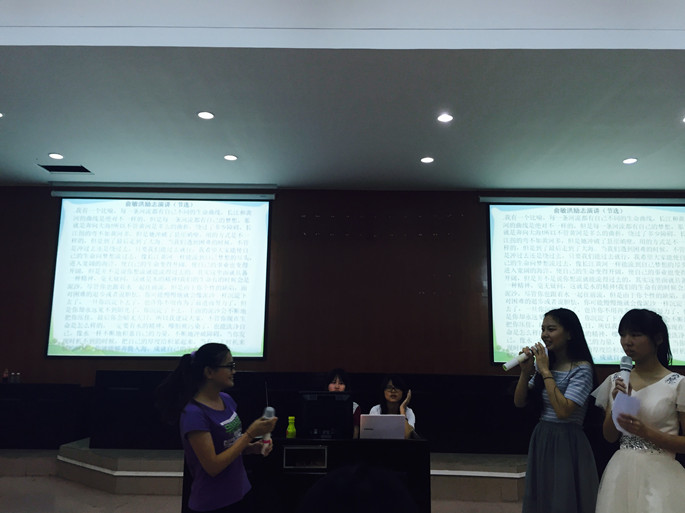 本次演讲比赛主要由命题演讲和即兴演讲组成,在第一环节的命题演讲中, 12位选手经过抽签确定参赛顺序,先进行一分钟的特色自我介绍之后,进入 “法与德,孰轻孰重” 的命题演讲之中。比赛中,各位选手不负众望,都以自信十足的姿态,慷慨激昂的语言阐述了对“法与德”的见解,更有肢体语言的合理配合,博得台下观众的阵阵掌声和声声喝彩。看完选手们的精彩演讲,台下群众亦跃跃欲试,禁不住上台尝试一番,在第二环节的观众互动中,现场观众都争先恐后地上台针对给定的演讲内容进行命题演讲,将气氛一次又一次的推向了高潮。通过一轮选拔,6位选手成功晋级下一轮的即兴演讲之“看视频,析观点”,由选手选取一段关于社会事件、时政热点的随机视频进行播放,随即对所观看视频做即兴演讲。选手们反应十分迅速,引得台下观众禁不住暗自感叹赞赏。最后,张仁瀞为本次比赛做总结点评,对于此次由级委组织策划的活动以及12位勇于站在台上的选手予以了肯定,也对同学们的不同类型的演讲技巧、恰到好处的肢体语言及台风等方面进行了点评与指导。