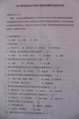 新型农村合作医疗制度,是党和政府为解决“三农”问题、构建和谐社会而出台的一项重大惠农政策,是政府扶持、农民互助共济的大病统筹基金制度。为更好了解关于新型农村合作医疗保险的实施情况,确保调研数据的真实性与完整性,以便有针对性地提出完善此制度的意见,队员们以两英镇政府为中心向四周的街道扩展,采取地图分区分街进行调研,认真记录调研人群的分布特点及时间段人流量的密集度,为“新型农村合作医疗保险实施情况调查”问卷调研拉开序幕。