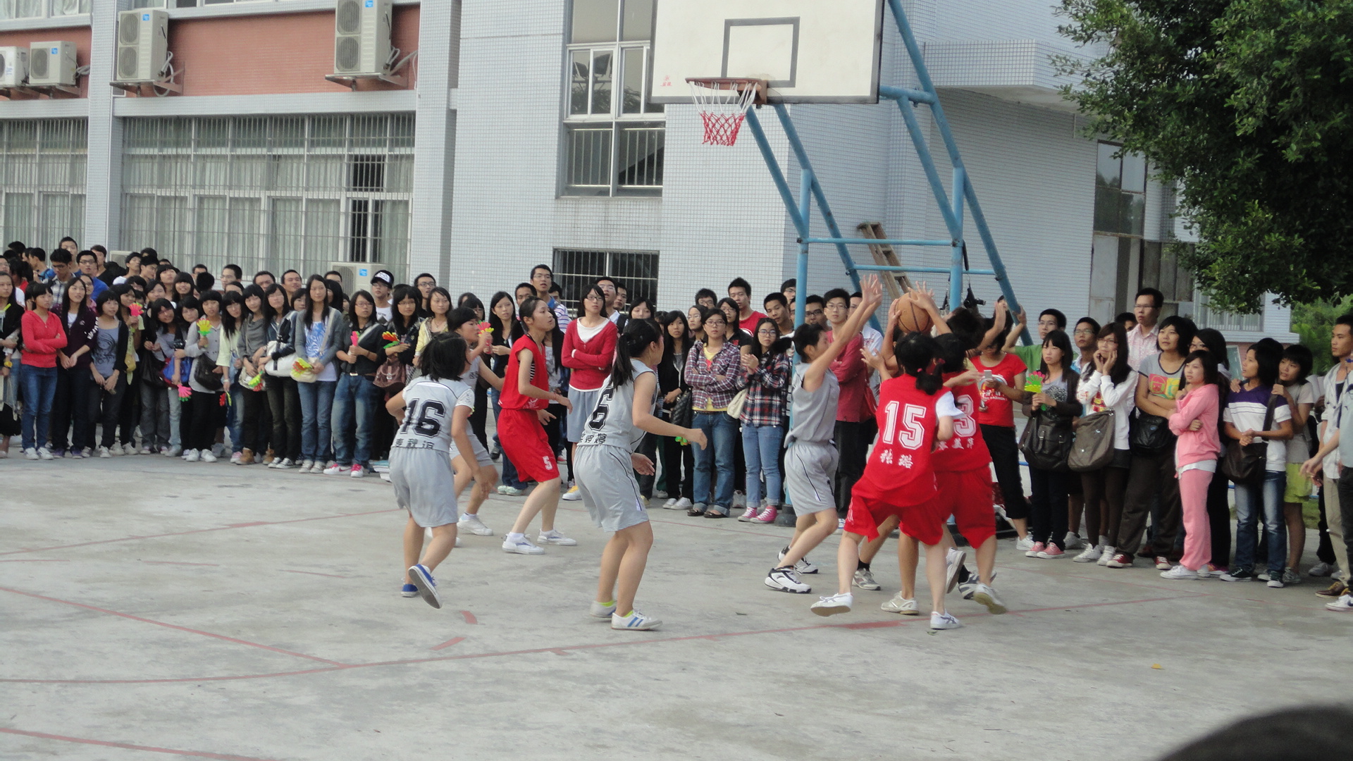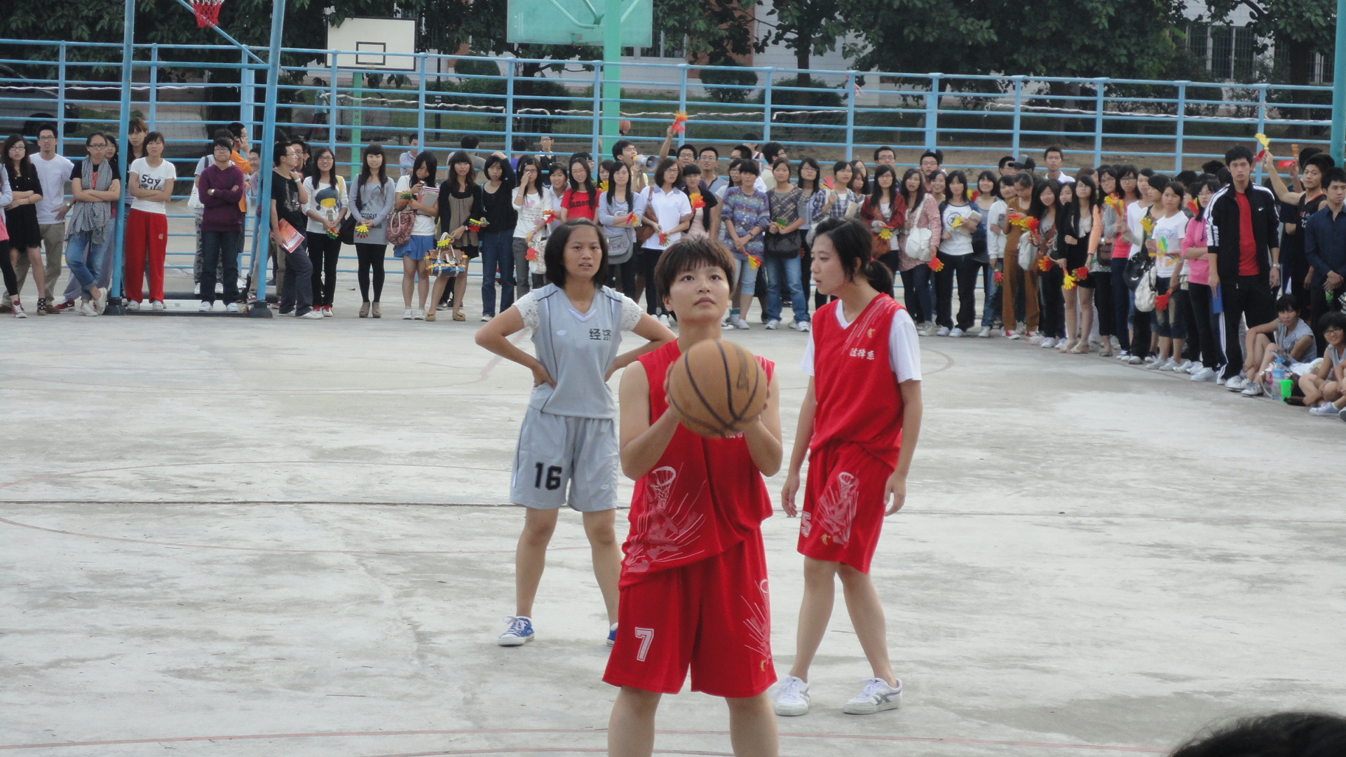一声哨响后,比赛正式开始,在第一节中彼此都体力充沛,队员们互相发起了猛烈地进攻,但双方都不分上下,经济系只以一分领先。到了第二节,法律系进攻愈加猛烈,由于对方的失误,得来了多次罚球的机会,法律系 7 号球员乌桂英凭借高超的投篮技术准确无误的投进了 6 个球,每一次进球无不让全场观众为之高声呐喊,掌声震耳欲聋,场面气氛甚为热烈,法律系的队员都信心大增,内心充满了激情与活力。随着得分的不断增加,比赛也进入了下半场,法律系的持续领先给了对手很大压力,于是经济系奋起直追, 法律系的队员 多次传球都被其截住,经济系的 6 号球员更与法律系 7 号球员和 10 号球员产生数次正面交锋,战况极其激烈,让观众热血沸腾,每到关键时刻,两边的啦啦队都会发出有力的呼喊,一次次的把比赛推向高潮。