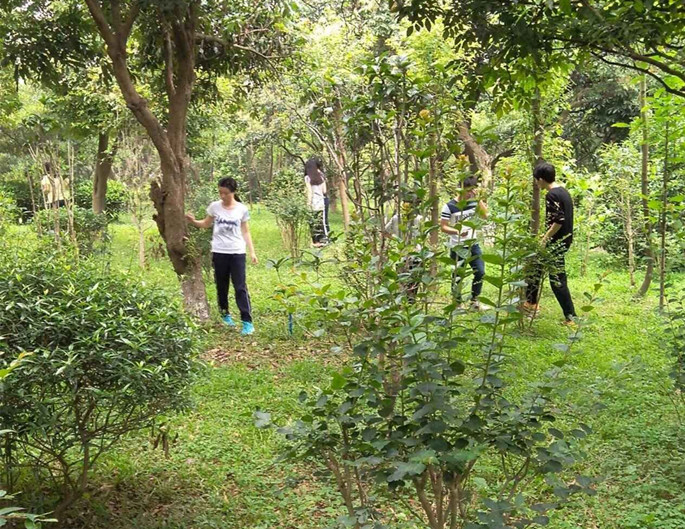 选手们在小树林寻找通过线索