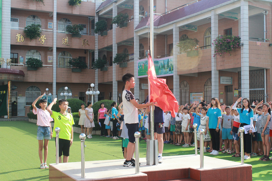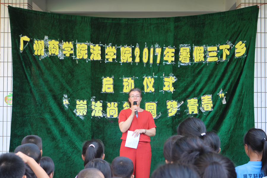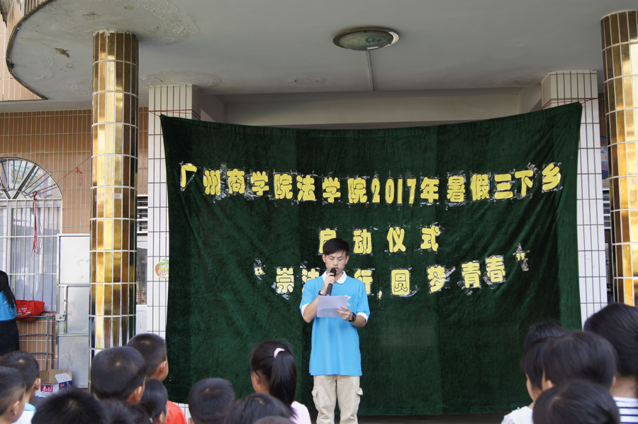 盛夏的七月,烈日炎炎,尽管汗水浸湿了所有志愿者的衣衫,但依然挥不去志愿者们饱满的热情。伴随着《义勇军进行曲》,国旗冉冉升起,所有参加夏令营的同学举起了有力的小臂膀向国旗敬礼。启动仪式上,阳光普法服务队队长罗于杰代表志愿者们作了发言,他展示了伟德国际victor1946阳光普服务队历年来“三下乡”活动的丰硕成果,阐述“三下乡”社会实践调研活动的目的及意义,具体描述今年暑期“三下乡”活动的主要内容;陈秀图代表公司在启动仪式上致辞,她强调“艰辛知人生,实践长才干”。暑期“三下乡”社会实践活动是开展老员工素质教育的载体,同时也是思想政治教育的社会课堂。老员工要深入到基层、群众中去,真正做到坚持学习理论和投身社会实践相统一。在实践中锻炼自己能力,致力培养“不怕苦,不怕累”的奉献精神;五和小学吕兰波代表五和小学的领导和老师们对伟德国际victor1946阳光普法服务队到五和小学开展“三下乡”社会实践活动表示热烈欢迎以及衷心的感谢。希望公司的小朋友在参加的活动的十天里有所收获,有所成长,把学到的知识铭记于心。她特别强调,要把安全放在首要位置,引用校训“安全第一,珍惜生命”加强对同学们的教育,让小朋友们牢记安全的重要,并祝伟德国际victor1946本次以“崇法尚行,圆梦青春”为主题,在五和小学开展的“三下乡”社会实践活动取得圆满成功。