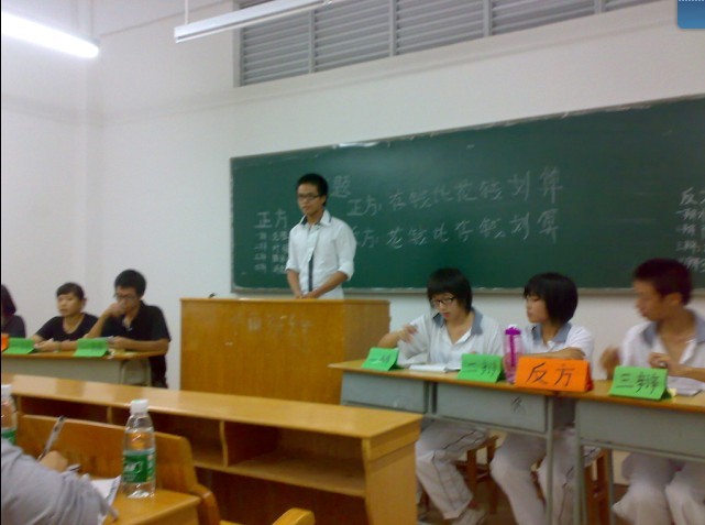 更激烈精彩的是自由辩论环节,正反双方的辩手都争分夺秒地把握住5分钟时间纷纷把对方辩手的观点驳倒。在自由辩论的高潮过后,正反双方四辩辩手进行总结陈词。评委团的评委在听了双方的辩论后,就他们的辩论主题提出了两三个问题,让辩手们进行回答。