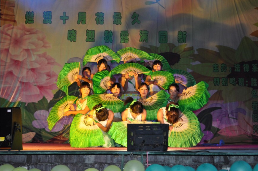 伴着欢快的节奏,慌而不乱的忙碌,有条不紊的调配,精彩的节目就开始了!以《Band Show》开场的动感氛围感染了全场观众,他们的激情、默契、活跃,无疑的给晚会定了欢快的基调。伴随其后的是艺术团的《街舞表演》,她们活力四射的姿态,观众热情的呼声,使整个晚会都沸腾起来了。随着主持人的开场白,音乐的响起,律务专业表演了音乐剧《栀子花开》,向观众诠释了一份师生间浓厚的情感。接着,行政专业的同学上演了一段青春活力的现代舞《Young》,透露着他们对梦想征途的自信。晚会期间,民商法专业的歌曲串烧,音协扣人心弦的歌声和舞协节拍鲜明的舞蹈给晚会增添了不少气氛。