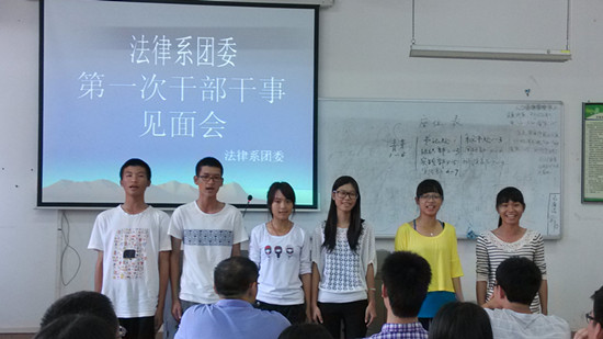 2013年10月10日中午12时,法律系团委于D2-103举办了法律系团委干事第一次见面会。到场的嘉宾有法律系团委书记叶小办老师、副书记祝建波老师和团委各部门的干部干事。