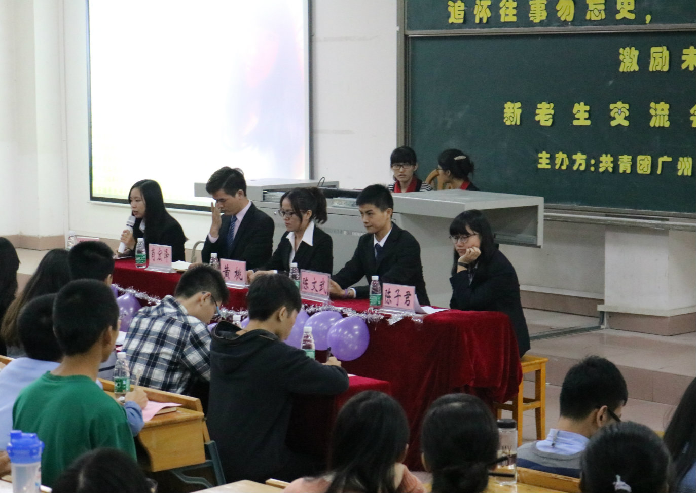 为使2015级新生尽快熟悉老员工活,给新老生提供交流学习的平台, 10月11日晚法律系团委在A107举行以“追忆往事勿忘史,激励未来勇向前”为主题的新老生交流会。出席本次大会的嘉宾有校团委组织部部长陈美贤、校团委宣传部部长林欣欣、校团委网络团支部书记张城宽及各系团委书记处等。