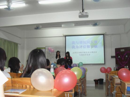 主题为“我与增院同发展 我为评估做贡献”的班会正式开始