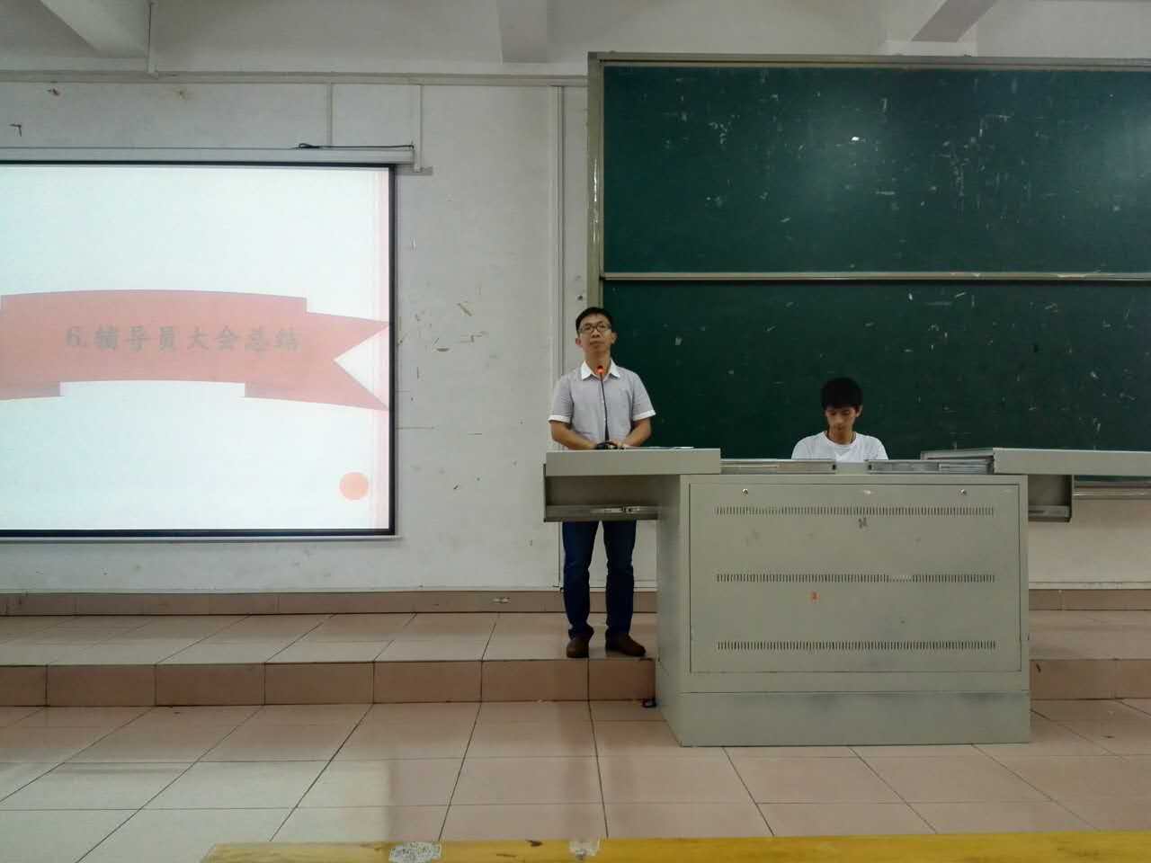 首先,辅导员葛任进行了年级工作总结。通过与同学们分享2016-2017年度年级各班的成长经历,对16级一年的工作进行了简明扼要的概述。在总结过程中,他使用例子、数据去阐述社会竞争的压力,引导同学们以正确的态度对待考试,激励同学们在大学期间就要建立目标和理想。
