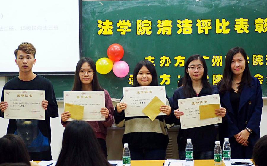 在颁奖仪式中,共有3名的同学由于工作组织出色,获得了“优秀生活委员”的先进个人荣誉称号;获得三等奖的集体分别是国经班、行政班、民商3班和民商4班;民商1班和民商2班两个班级获得了二等奖的集体荣誉;律师实务班获得一等奖。