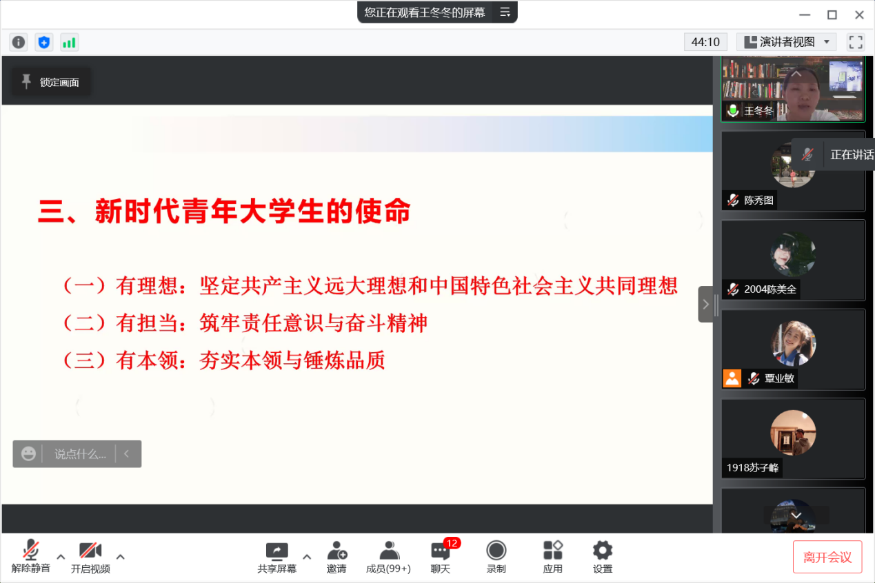 会议上,邹雨芯带领全体工作人员学习了《关于加强和改进广东高校员工会组织 “公司、...