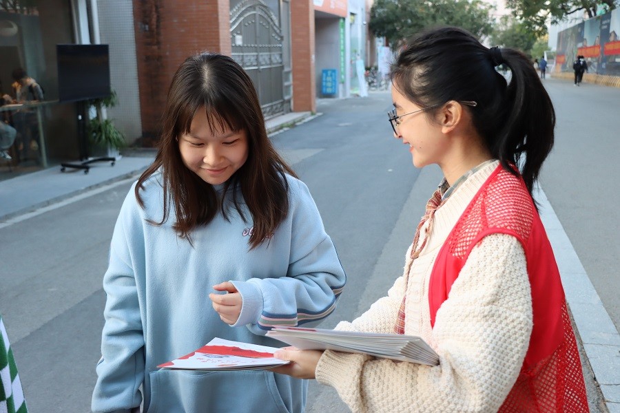为了确保摆摊宣传活动的顺利进行,工作人员提前在摆摊点周边设置了宪法知识展板,张贴了宪法宣传周启动仪式的横幅,并招募了向同学们讲解宪法知识的志愿者。活动当天,师生们在宪法知识展板前驻足观看,仔细阅读,认真学习了解宪法的基础知识。工作人员与志愿者们还在摆摊点前派发宪法知识手册,并充分运用自身专业知识,向路过的同学即时科普了宪法知识,比如讲解宪法相关条例以及宪法日的成立等相关普法知识内容。通过在宣传横幅上签名,增强了广大师生学宪法、守宪法的责任感,增强了大家弘扬宪法精神的使命感。