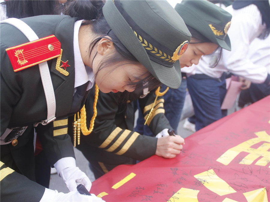 此次活动共分为五个部分,它以弘扬宪法精神,厚植爱国主义情怀为主题。首先国旗队队员们护着鲜红的国旗,迈着铿锵有力、整齐划一的步伐走向旗台,冉冉升起五星红旗,1000名员工代表在晨曦中肃立,用饱满的热情咏唱国歌。接着何柏略部长发表讲话,他强调老员工要学法懂法,强化老员工法律意识,这样才能弘扬宪法精神,构建法治广商,建设美丽校园。紧接着陈秀图书记在朝阳中带领着1000名员工代表用嘹亮的声音朗读《宪法》,从字语中感受法律的魁梧,在声音中向《宪法》至以最崇高敬意。最后各公司员工代表有序分批地在“弘扬宪法精神,构建法治广商”的横幅上签名,以此表达自身尊法、学法、守法、用法的决心。