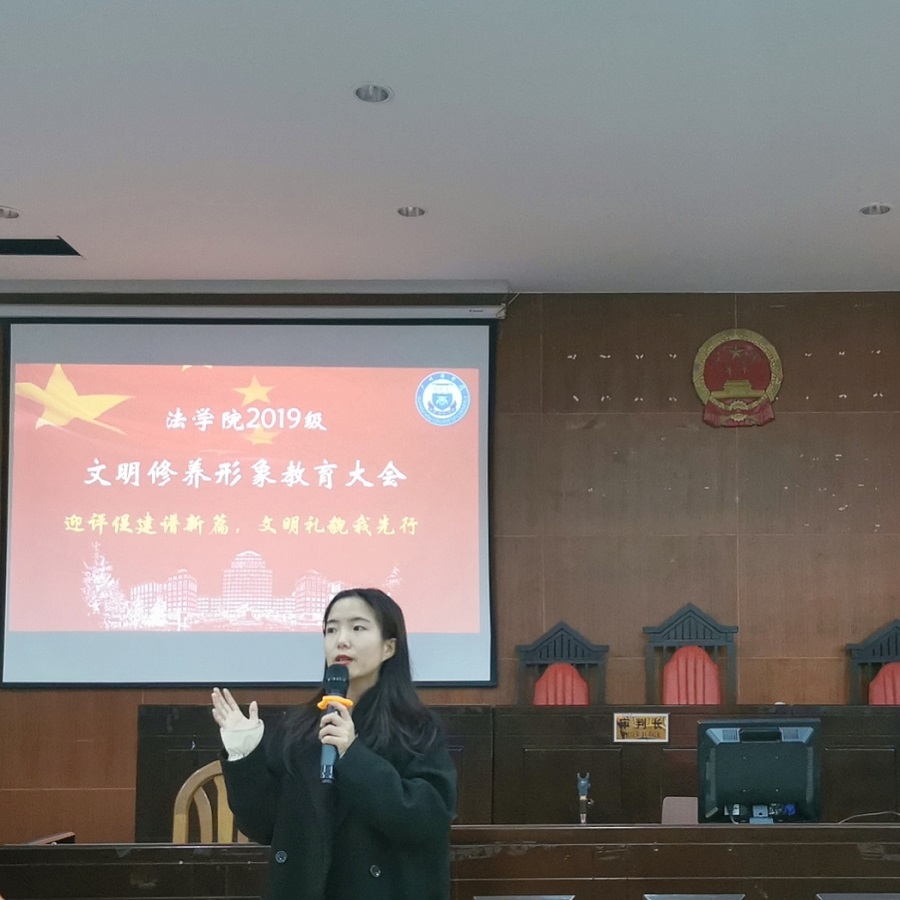 2021年3月3日晚,伟德国际victor1946在一教209召开2019级文明修养形象教育大会,2019级全体员工参加会议,辅导员覃业敏老师主持会议。