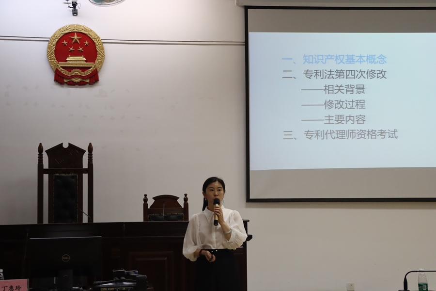 讲座伊始,唐犀对本次专题教育讲座的主讲人表示热烈的欢迎,他指出此次讲座能及时地向同学们普及新修改的知识产权法律知识,提高同学们保护知识产权的意识。丁惠玲从知识产权的分类、知识产权的重要组成部分、我国专利制度的起源,专利法保护的三类客体四个方面展开本次知识产权专题教育。通过她的精简而准确的介绍,同学们对于知识产权范畴下的具体法律概念也建立起了初步的理解。丁惠玲将知识产权的理论知识与生活案例相结合,增强了本次专题教育的趣味性。比如举例说明了相关专业与专利法保护的三类客体之间的联系,并用一个个生动鲜活的实例引起了同学们的共鸣,拉近了专利权保护与同学们日常生活的距离。