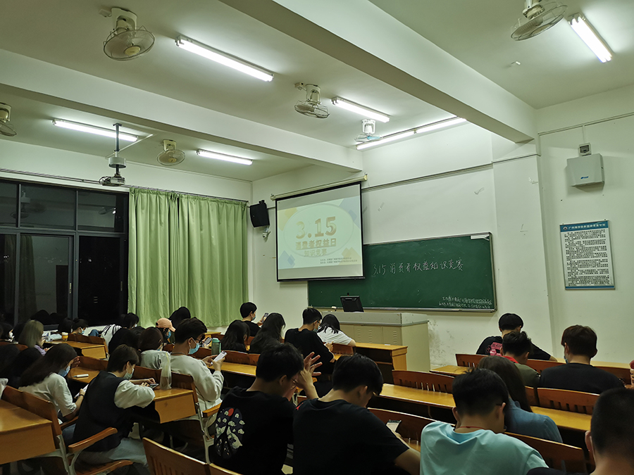 本次活动主要通过“校园摆摊宣传”以及“线上知识竞赛”两种形式展开。一方面,工作人员于3月15日中午在校道进行了摆摊宣传活动,现场通过向师生发放宣传单、悬挂条幅等,重点讲解了相关消费者权益保护的法律法规,以及强调保护消费者合法权益是全社会共同责任。此次的摆摊宣传活动不仅加深了广大师生对消费者权益的理解认识,也使“法治广商”的建设迈进一步。另一方面,由权益部承办的“3.15消费者权益日”线上知识竞赛在第四教学楼开展。知识竞赛充分发挥消费者学习维护合法权益社会平台的作用,以赛促学,筑牢消费者维权意识基础。