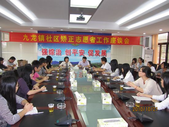 2010年10月20日,萝岗区九龙镇司法所组织召开“九龙镇社区矫正志愿者工作座谈会”。萝岗区司法局领导、九龙镇司法所领导、华师增城公司法律系李晟老师、钟远珊老师及法律系20名员工志愿者参加会议。